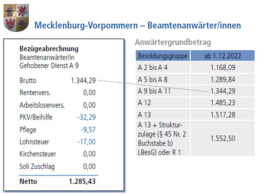 Bezüge für Beamtenanwärterinnen und Beamtenanwärter von Mecklenburg-Vorpommern