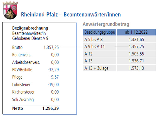 Bezüge für Beamtenanwärterinnen und Beamtenanwärter des Landes Rheinland-Pfalz